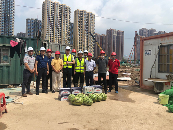 進入三伏天以來,我市持續高溫,驕陽似火、熱浪襲人。高溫酷暑下,公司分布在全市各區域的巖土工程、基礎工程、測繪工程、檢測監測工程……項目部一線工作人員仍堅守崗位、揮汗如雨。公司領導高度重視,董事長廖建生親自部署,要求各部門及時安排防暑降溫物資,注重安全生產,同時指示公司各分管領導分赴項目現場進行慰問指導,查看施工作業情況,解決實際困難。