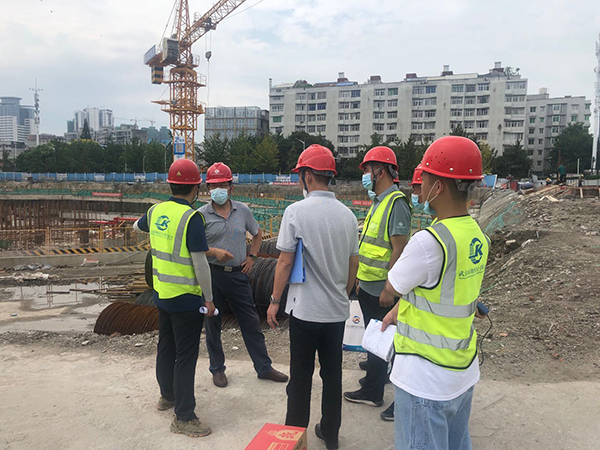 8月12日上午,公司總經理施木俊、副總經理兼總工程師官善友率領綜合部、技術質量安全部、巖土工程一公司、檢測監測公司主要負責人及相關人員親赴一線,依次巡察了華景川武漢東西湖36號地勘察項目、金融街武漢融拓盛瀾臨江大道9號地塊項目基坑監測主體沉降觀測服務項目施工現場,看望慰問了冒著高溫酷暑堅守崗位的一線員工,為他們送去了防暑降溫物品。每到一處,施總、官總還踏看了解工程進展、人員作息時間等情況,并對高溫天氣各項安全生產及疫情常態化防控工作落實情況進行全面檢查,要求相關部門要切實做好高溫防護和疫情防控工作,既要保證工程質量,更要注意安全。